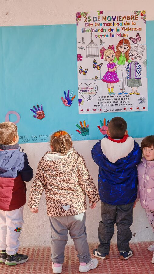 El 25 de noviembre, el C.E.I.P. San Pedro de Alcántara se une a la conmemoración mundial del Día Internacional de la Eliminación de la Violencia contra la Mujer, una fecha dedicada a sensibilizar, reflexionar y actuar contra cualquier forma de violencia ejercida hacia mujeres y niñas en todo el mundo.